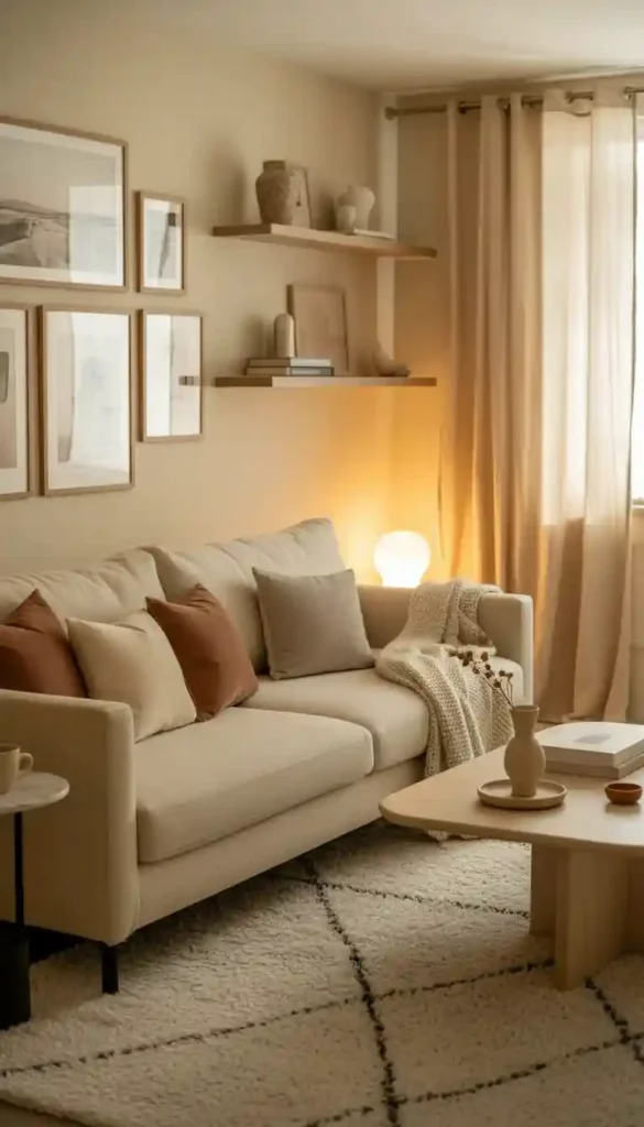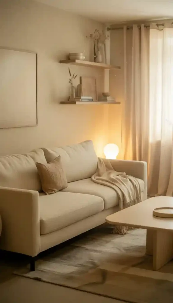 The warm beige glow apartment living room is proof that a single palette, executed with depth and intention, can create a space that feels both stunning and completely livable. Layer your textures, warm your lighting, and trust the power of restraint.