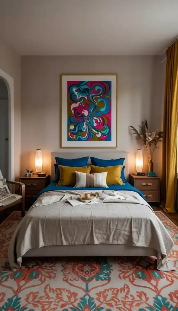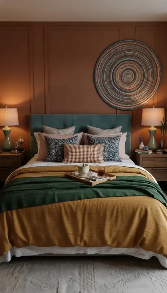 These natural elements prevent “cozy” from sliding into “hotel generic.” They add personality while maintaining the warm, inviting vibe.