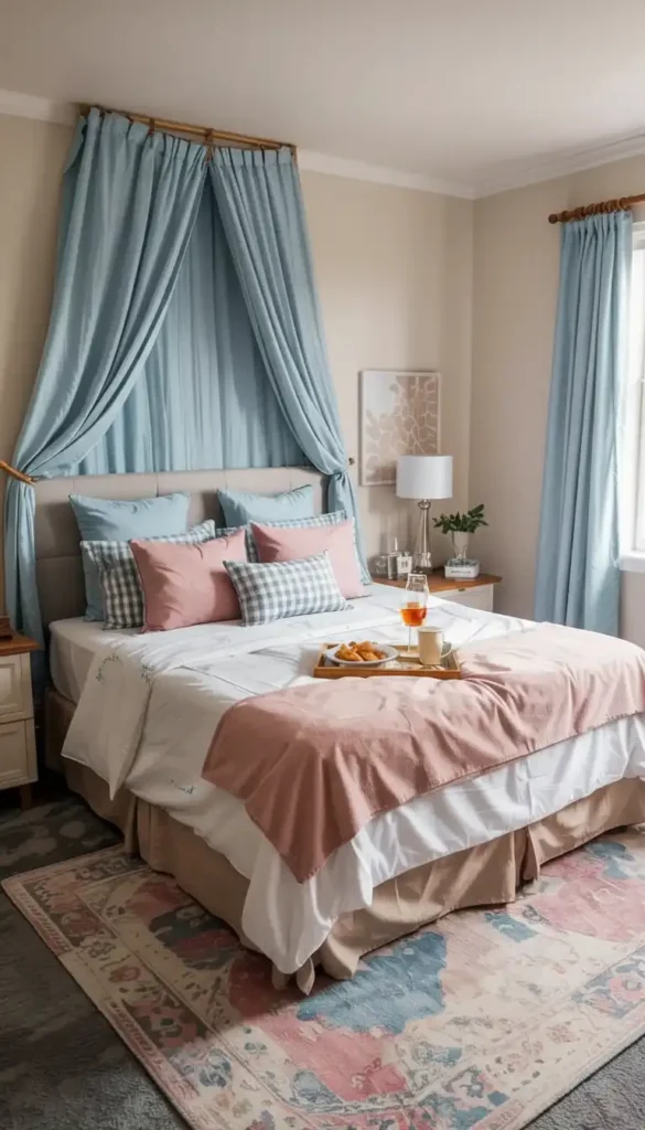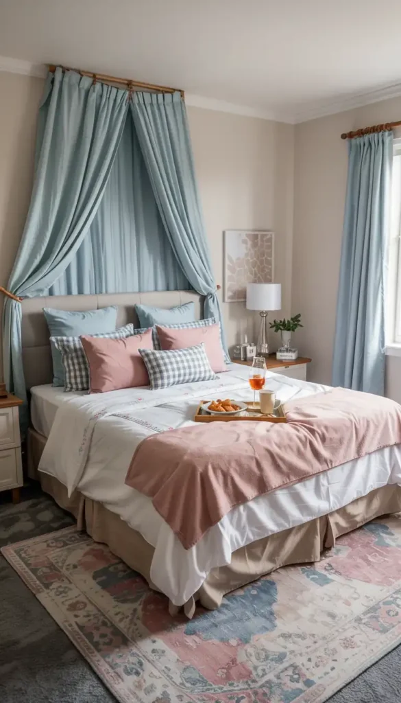 The canopy transforms the bed into a distinct zone within the room—perfect for creating that retreat feeling.