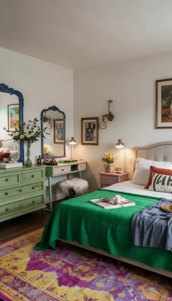 Pick a personal detail that matters to you—maybe vintage cameras, collected ceramics, or a single bold color—and let that thread through the room without overwhelming it.