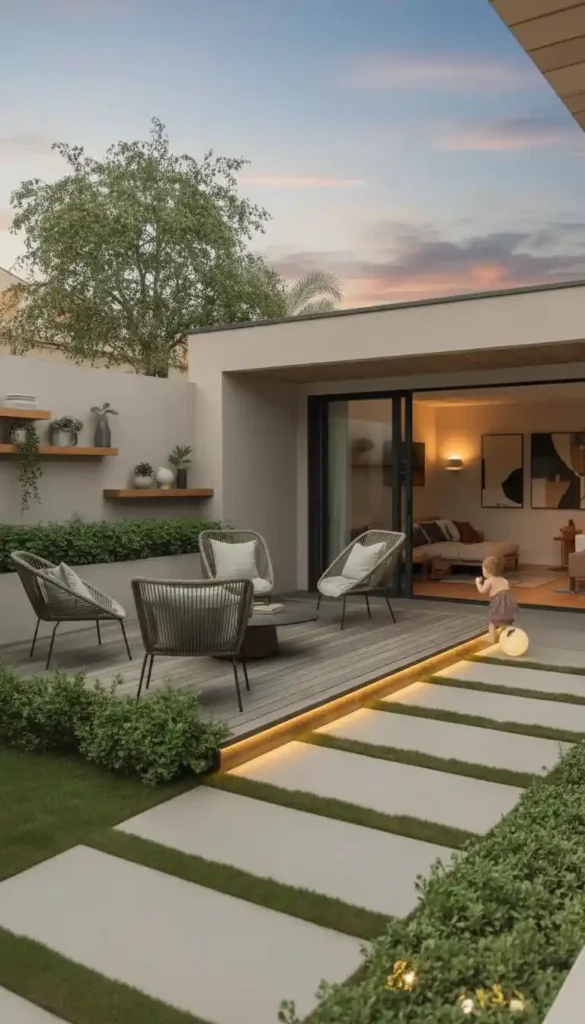 A modern family layout works because it removes daily friction. When the dining table is near the kitchen door, meals outside happen more often. When the play area is visible from the lounge chair, parents relax more fully. When the path is clear and the lighting is on, the whole family stays outside longer.