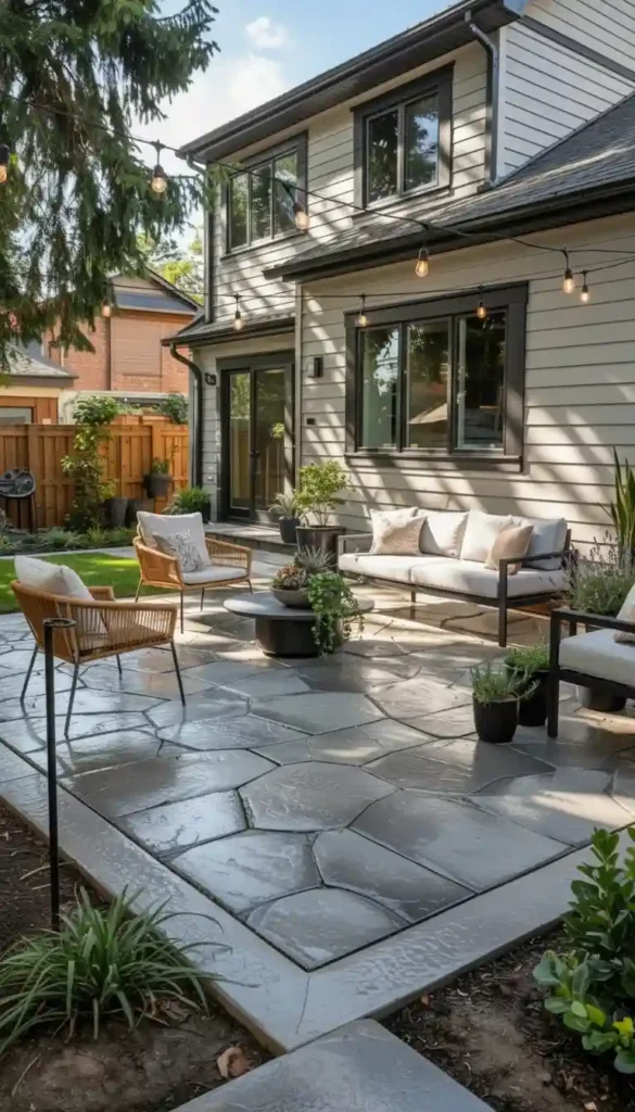 For most backyards, ashlar slate or random stone patterns are the most universally loved because they look natural without being busy.
