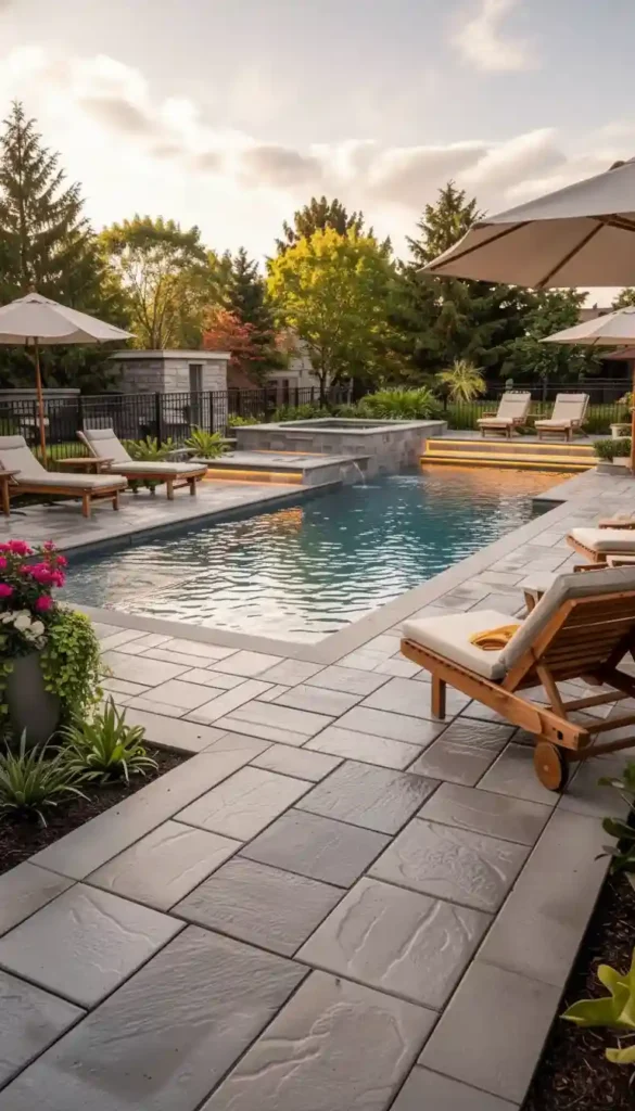 Water management is critical on pool decks. Poor drainage leads to standing water, algae, and surface degradation.