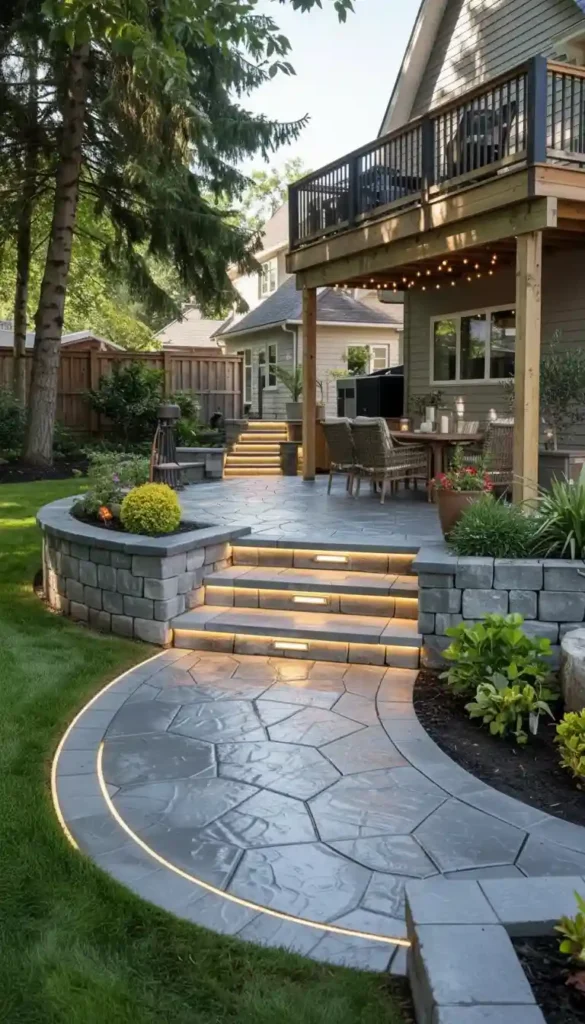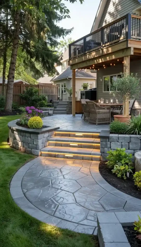 Steps are often the last thing homeowners think about — and the first thing visitors notice. Well-designed stamped concrete steps tie your entire outdoor space together. They handle the practical job of moving between levels while adding architectural character that elevates the whole design. This section shows you how to design steps that do both beautifully.