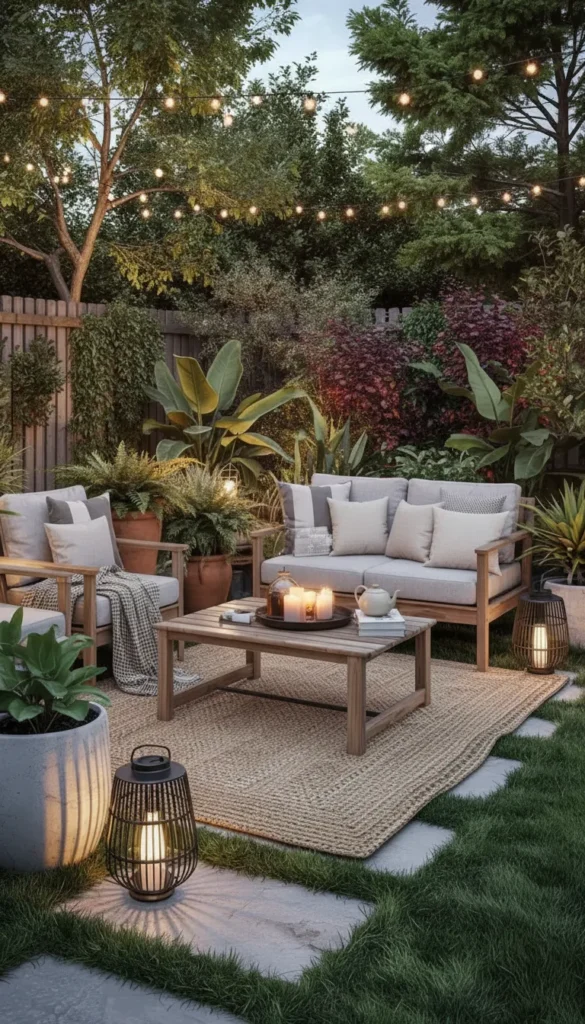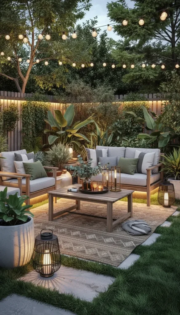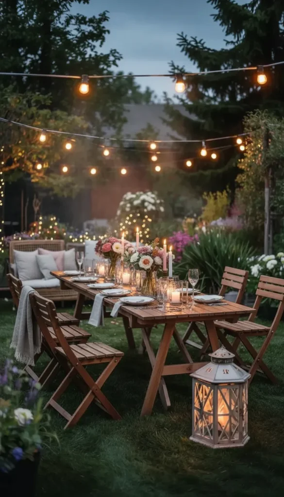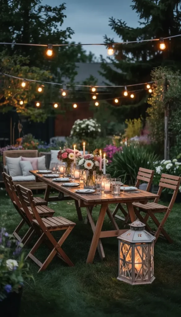 - Combine three light levels: overhead (string lights or pendant fixtures), mid-level (lanterns on tables), and ground-level (pathway lights).