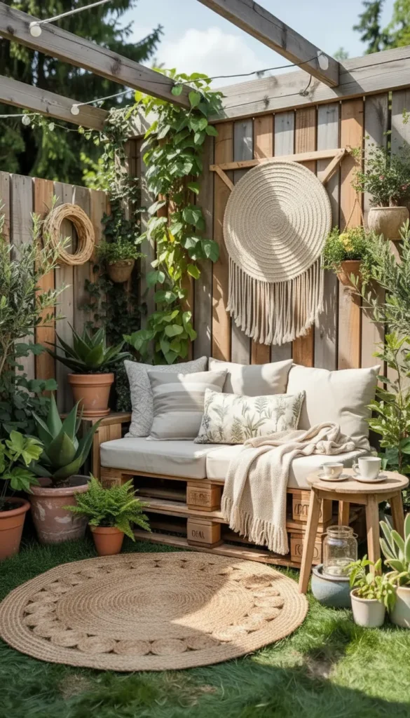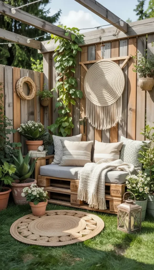 - Wooden pallet benches with storage underneath keep cushions or tools out of sight.