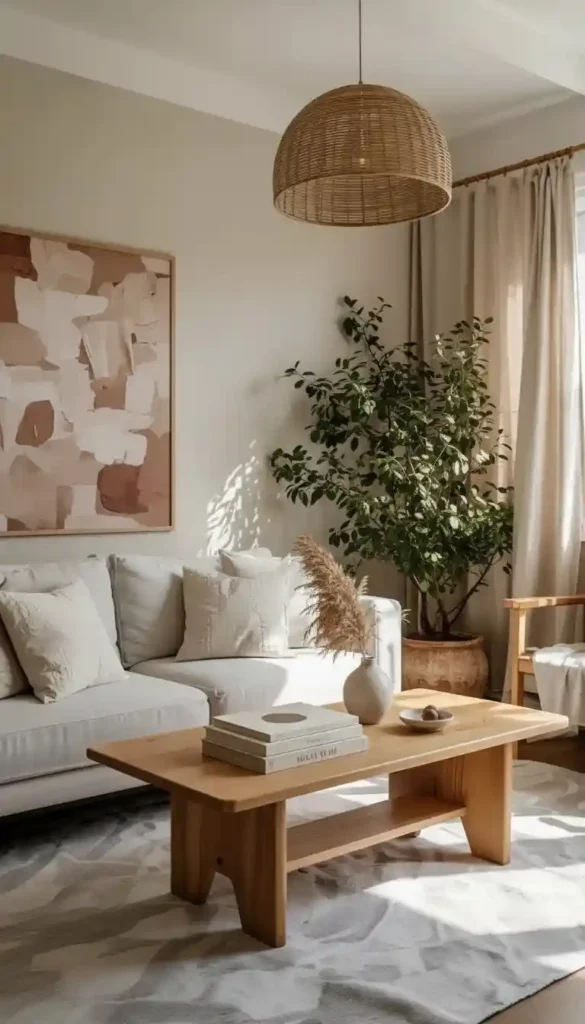 • Coffee tables in light solid wood or stone β€” simple forms, beautiful materials