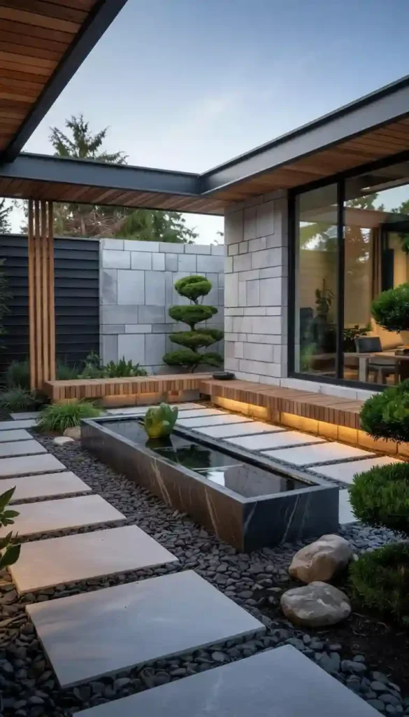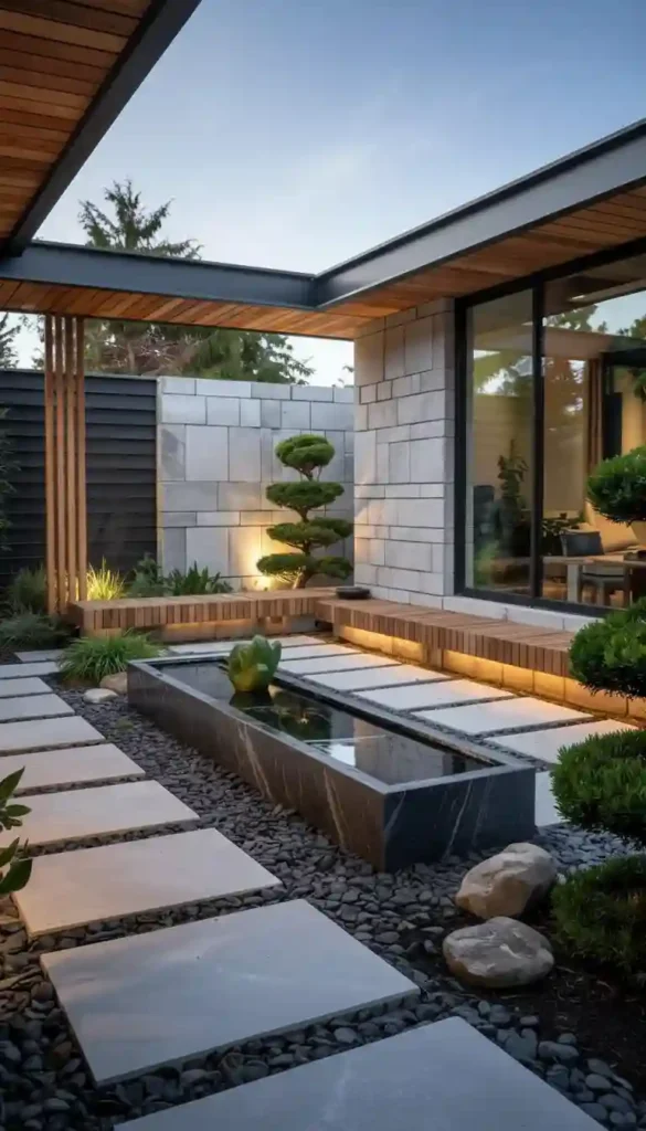 One well-placed uplight on a sculptural tree is worth more than ten bright path lights. Scale matters in modern zen design β one large, right element always beats five small decorative ones.