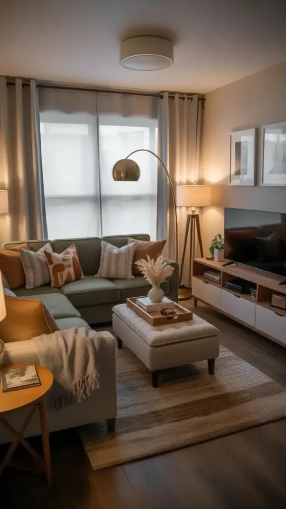 This layout creates a natural flow that makes your small living room feel organized rather than chaotic.