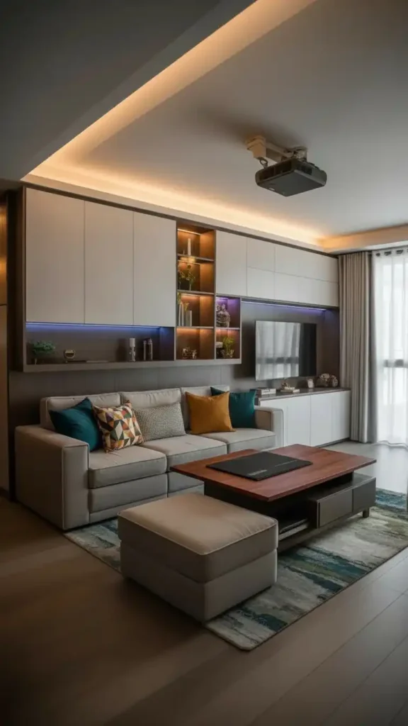 Technology and multi-functional furniture transform small living rooms into adaptable spaces that shift between work, entertainment, and relaxation. This approach embraces modular pieces, hidden storage, and smart home integration for maximum versatility.
